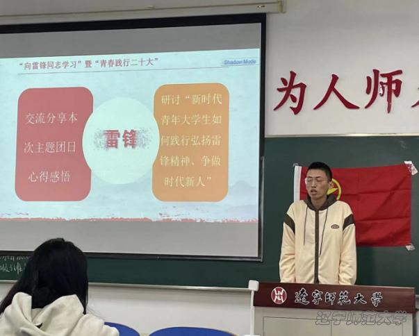 为深入贯彻习近平新时代中国特色社会主义思想,学习党的二十大精神,引导广大学生了解雷锋精神的实质和时代内涵,将雷锋精神与党的二十大精神内化于心、外化于行,pg国际特组织各团支部开展“向雷锋同志学习”暨“青春践行二十大”主题班团会。
