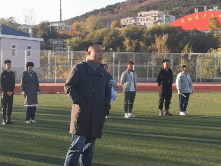 比赛开始前,李智通老师进行讲话。他提醒同学们安全第一,比赛过程中要尽量避免受伤,并表示同学们认真参与的态度比结果更重要。老师讲话结束后,参与比赛的同学们积极地开始热身。