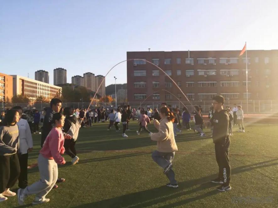 最后是集体长绳,选手们全神贯注,没有丝毫的放松与懈怠。她们排成一队,一个接一个灵活地跃起,轻盈地从大绳间穿过。她们的额头上渗出了汗珠,展现出青春最美的样子。场外的同学也卖力地为比赛中的运动员们呐喊助威。