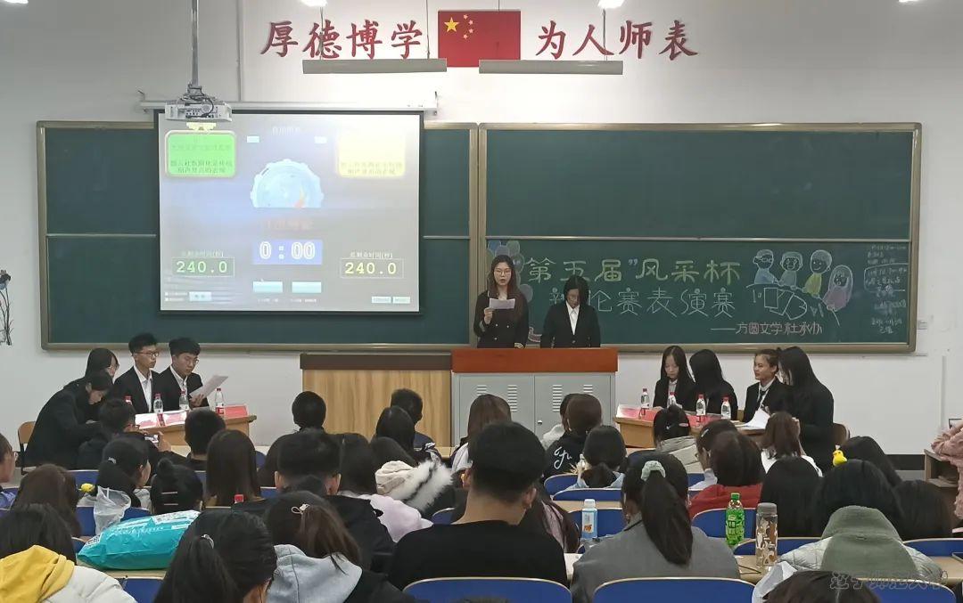 11月7日晚上6:00,pg国际方圆文学社于一教201教室举办第五届“风采杯”辩论赛表演赛。政府管理学院韩一鸣、徐豪澎,物理与电子技术学院曾宇熙,教育学院李诗华,法学院何宓润受邀出席,2020级部分同学观看本次辩论赛。