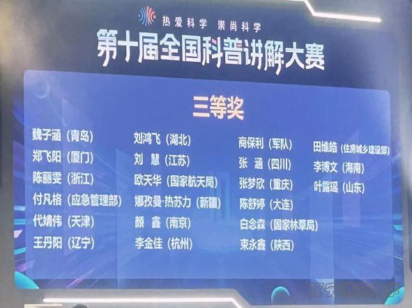 通过部委和地方选拔,本届进入全国科普讲解大赛的选手共有265名,分别来自80个代表队。代表队来自五湖四海,其中更是有教育部、军队代表队、中国科学院、国家航天局、海关总署等竞争力极强的队伍。此次大赛设一等奖10名,二等奖20名,三等奖45名。