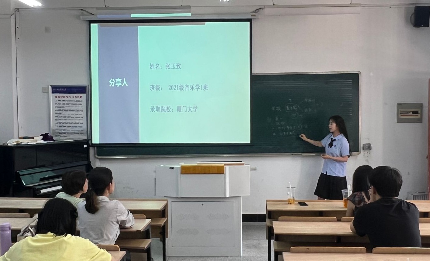 音乐学专业2021级(4)班张坤以优异成绩考入浙江传媒学院声乐表演方向。他结合自身经历,从“院校选择策略”“考试重点环节”等角度展开分享,建议学弟学妹通过分析院校特色与自身优势精准定位目标。2021(1)班张玉致(厦门大学录取)详细解析了分阶段备考计划,强调“基础巩固—强化提升—模拟冲刺”三阶段学习法,并展示了如何高效分配时间与精力。
