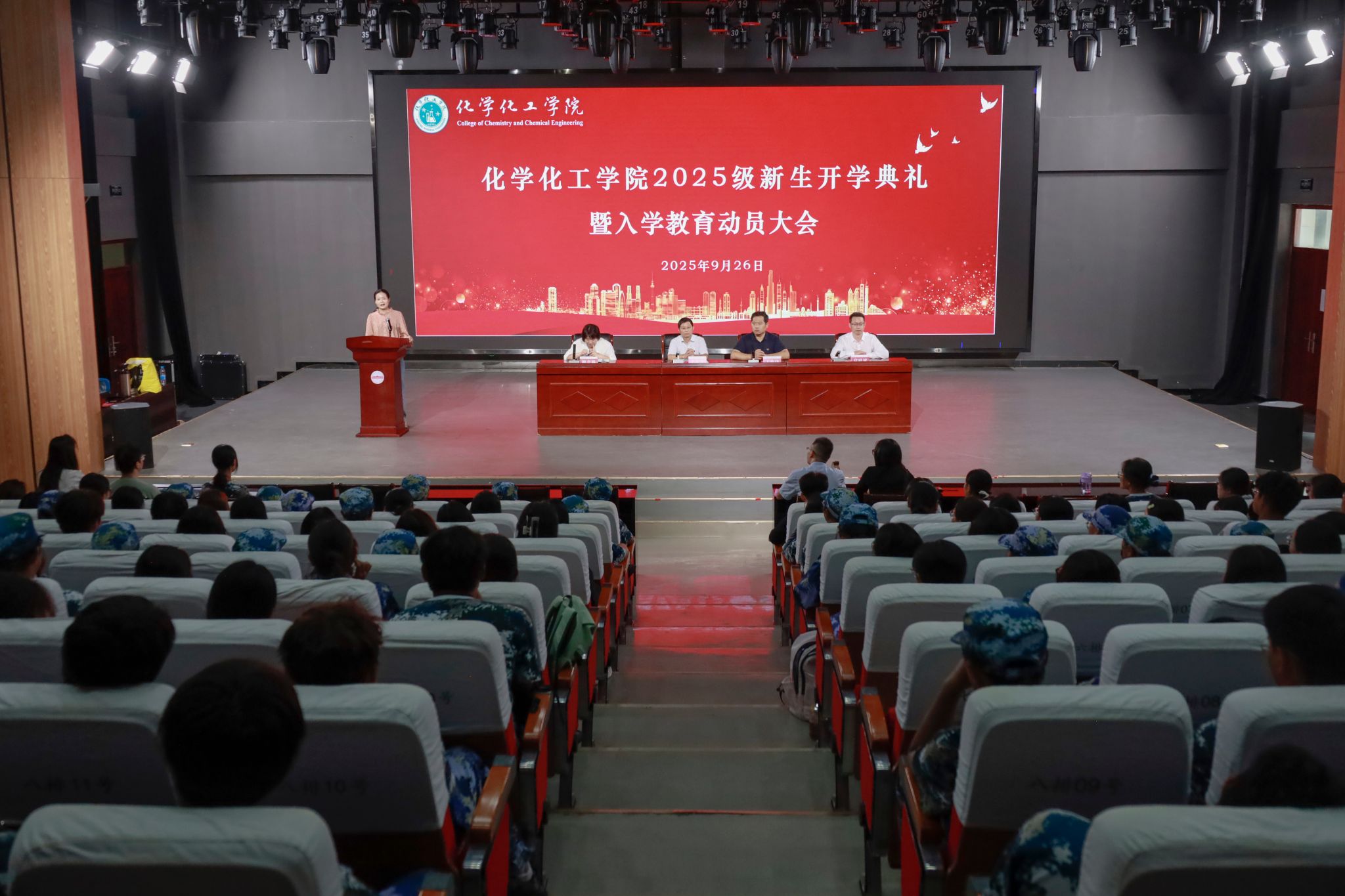 9月26日,化学化工学院举办2025级新生开学典礼暨入学教育动员大会。学院党政领导、教师代表、专业负责人、2025级新生辅导员及2025级全体新生共同参加典礼。典礼由学院党委副书记、纪委书记鲍青燕主持。