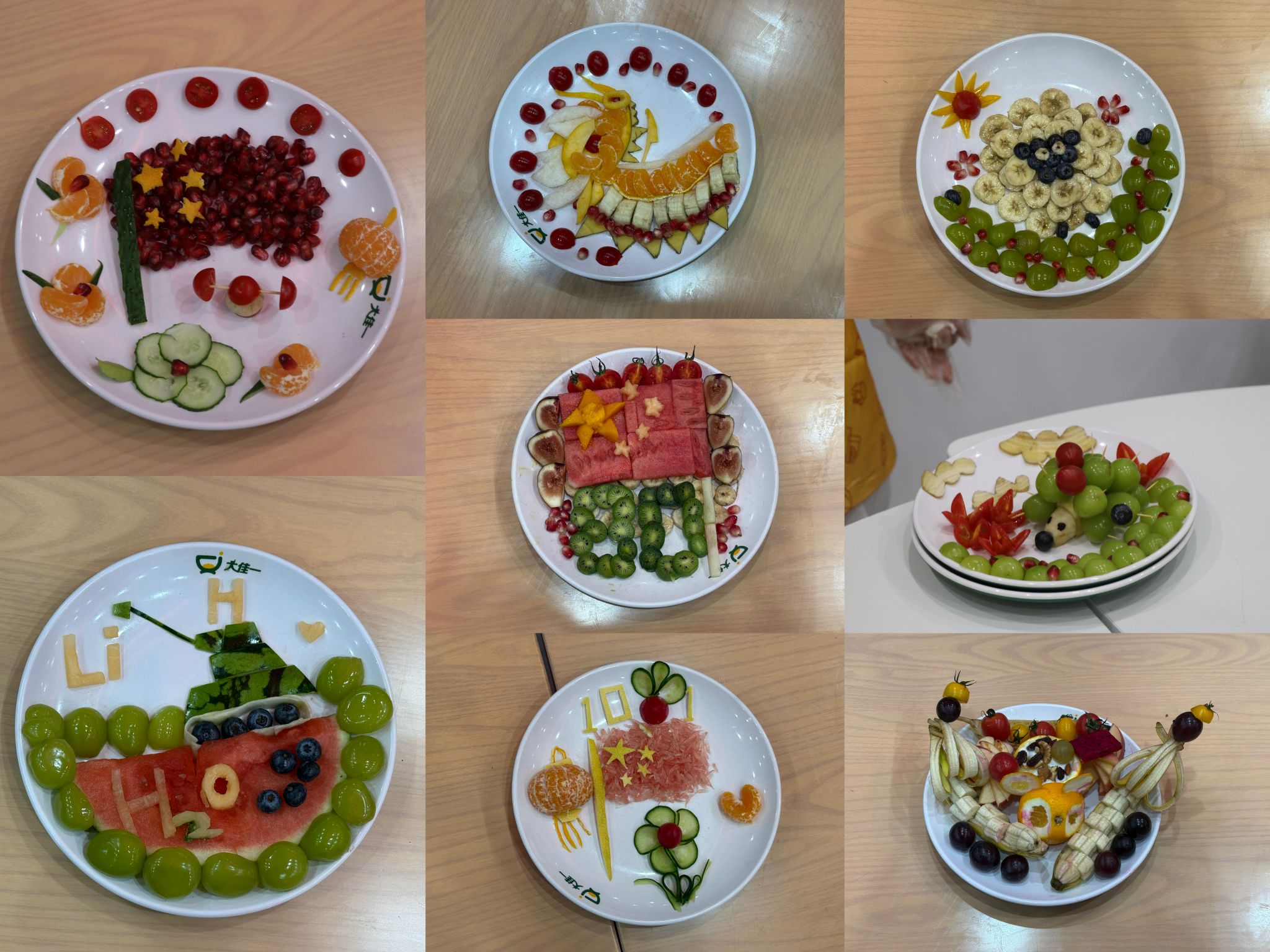 比赛共有十支队伍报名参加,各队围绕国庆献礼、家国情怀与时代使命等主题展开创作,充分利用水果的色泽与形态特点,通过精心切割、创意雕刻与艺术拼合,将常见水果转化为一系列寓意深远、造型生动的拼盘作品。《国色果香迎国庆》《龙腾果韵》《石榴红映五星耀》等优秀作品依次呈现,展现出同学们良好的审美素养与出色的动手能力。