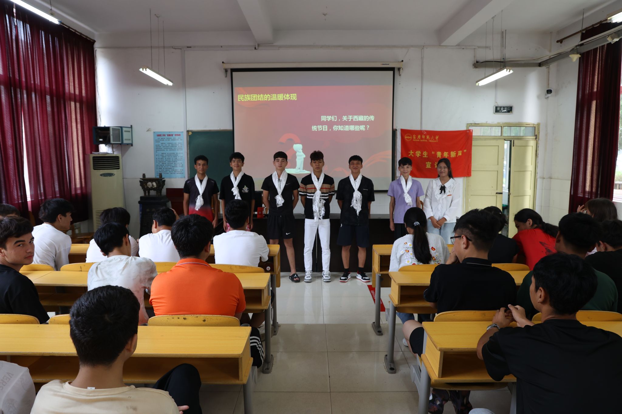 整场宣讲深入浅出,气氛活跃。强巴卓嘎围绕藏历新年、雪顿节以及古尔邦节、肉孜节等民族传统节日展开提问,为积极回答的同学献上了象征祝福的哈达。郑洁怡则以爱国为主题与同学们互动,并为踊跃参与的学生送上月饼。