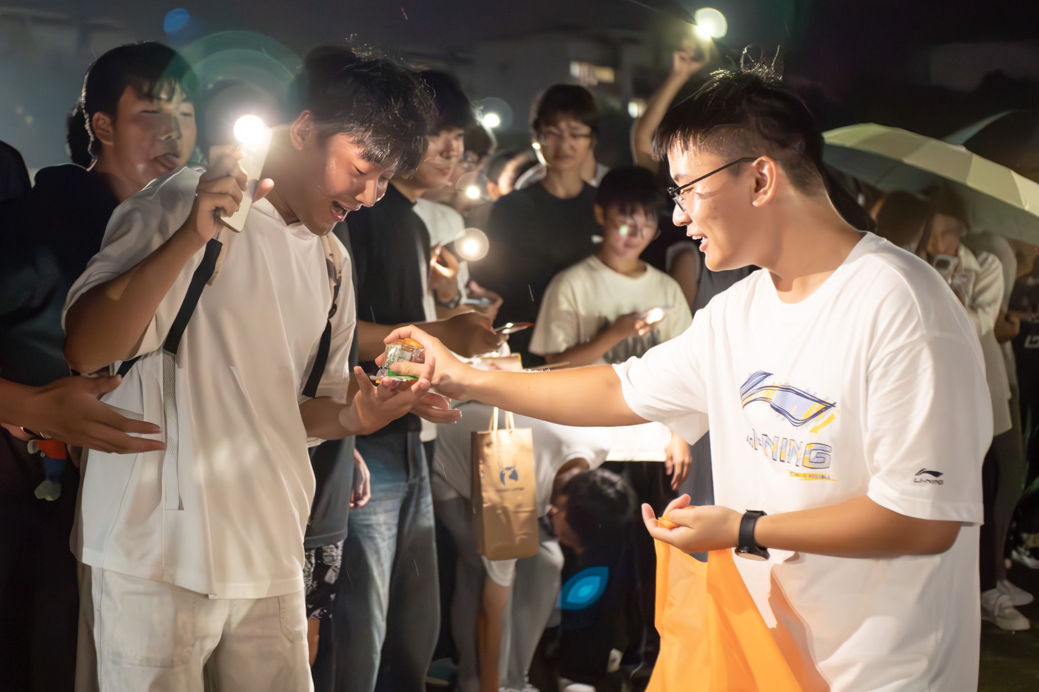 一首《探窗》唱出了古风戏腔的独特韵味,《你不在》将独属于少年人的情感悸动展现了出来,《蝴蝶》唱出了诗意的浪漫,《心许百年》把细腻真挚的情感表达得淋漓尽致……每一个节目如同一滴独特的“试剂”,在音乐节的“反应釜”中交融碰撞,绽放出别样的火花。虽无绚丽的灯光、精致的舞台,同学们以绿茵为天然席,以夜空为墨色幕,沾些桂香席地而坐,连指尖都染着草木的温软。