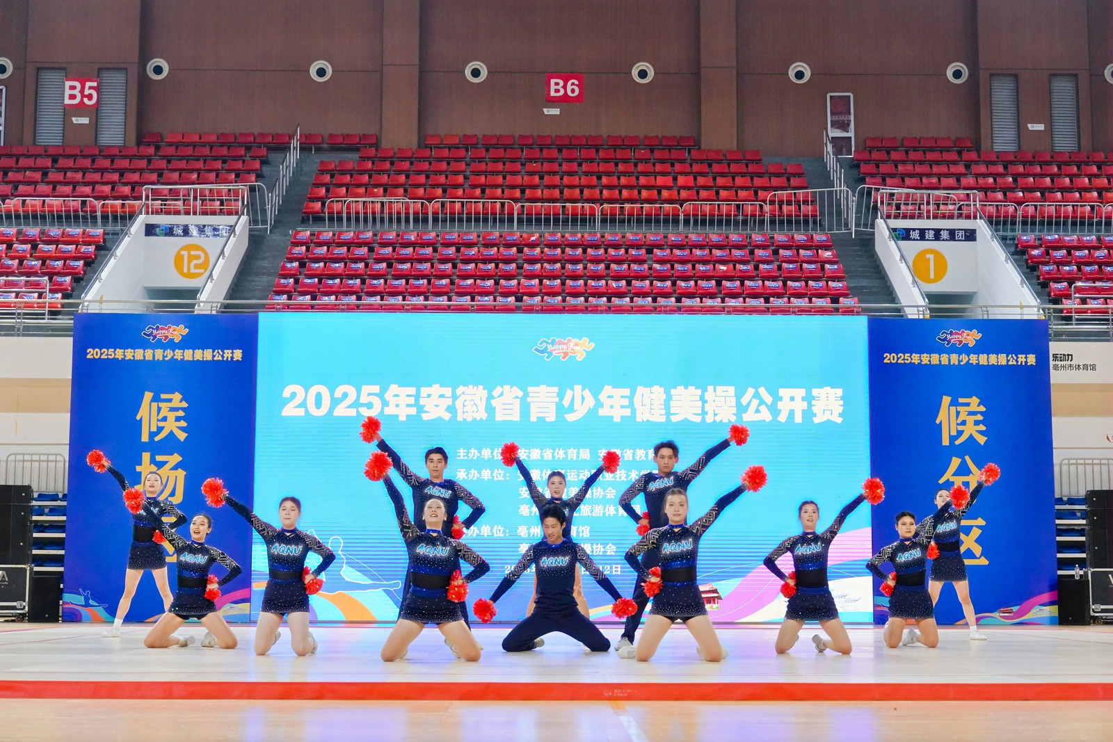 10月10日至12日,2025年安徽省青少年健美操公开赛在亳州市体育馆举办。健美操代表队由体育学院副院长王晓东任领队,在教练员潮芳、王云辉的指导下,最终以优异表现获得一等奖、二等奖各1项。