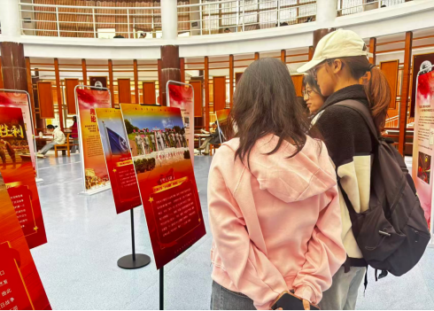 近日,大学生青年法学会在龙山校区图书馆举办“血沃中原·魂铸山河”抗战主题观展活动。