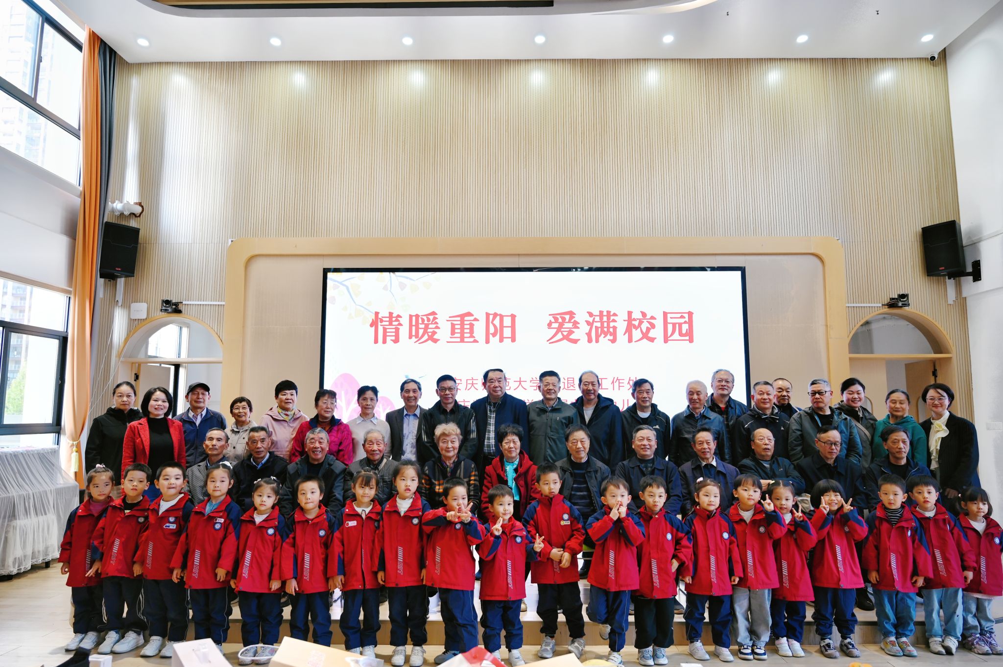 10月29日,附属龙城幼儿园携手校离退休工作处,共同开展“情暖重阳 爱满校园”爱老敬老主题活动。30余名大学退休党员教师代表及离退休工作处处长汪健一行走进附幼,与幼儿共度温馨时光,以双向互动的温情场景,让尊老敬老传统美德融入幼儿成长、浸润童心。