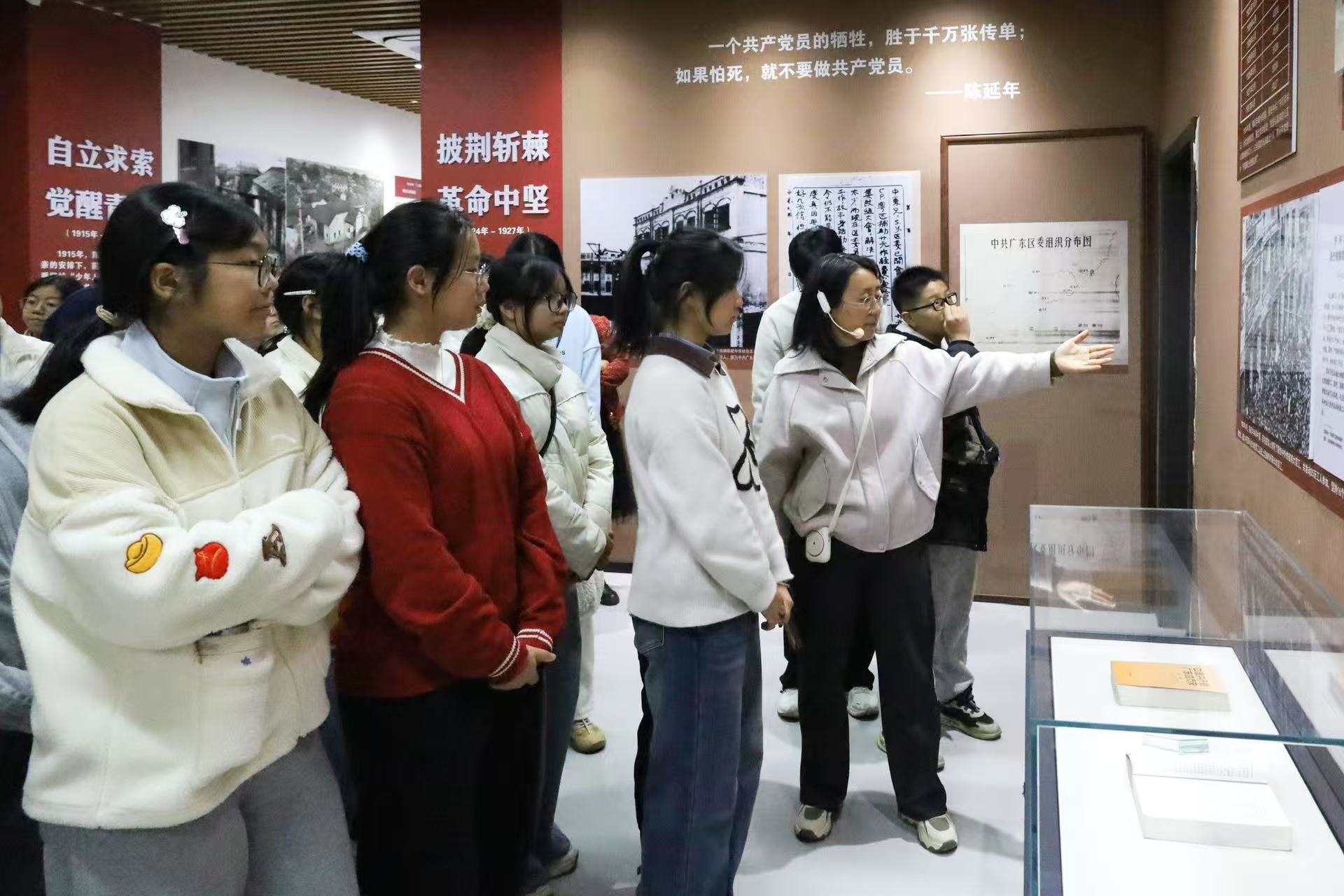 “陈延年曾说:‘少年的肩上有清风明月和国家担当,挑起时代的脊梁’,这句话让我深受触动。”高一(1)班学生黄蕾在“自立求索,觉醒青年”展区前分享道。她表示,通过深入了解烈士事迹,自己更加认识到当代青年应传承英烈精神,将个人成长融入国家发展之中。