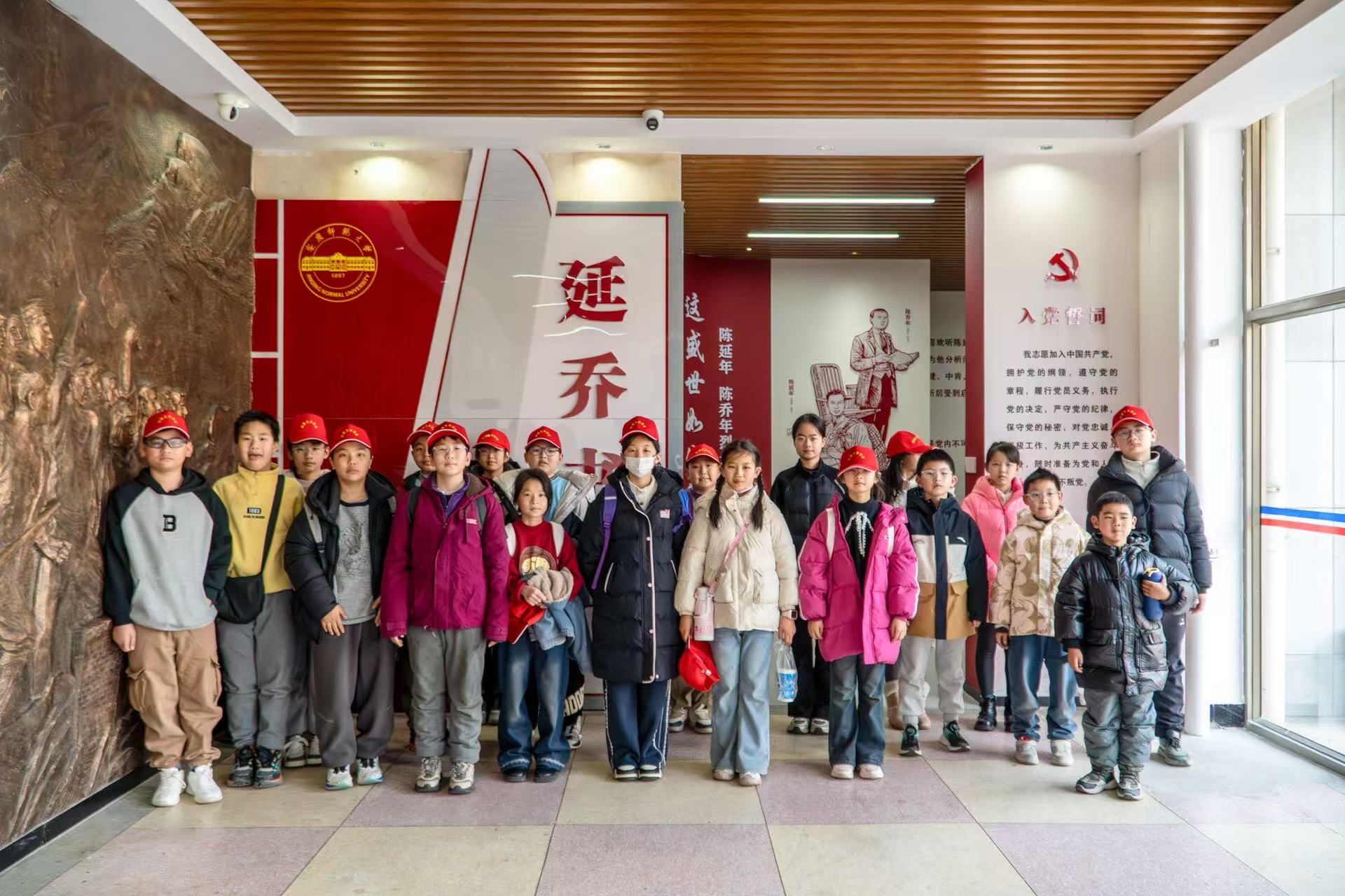 12月17日,向荣艺术学校50余名师生走进beat365英国官方网站图书馆,开启一场兼具文化底蕴与红色精神的研学之旅。图书馆精心安排两名经验丰富的老师,全程负责接待与讲解工作。