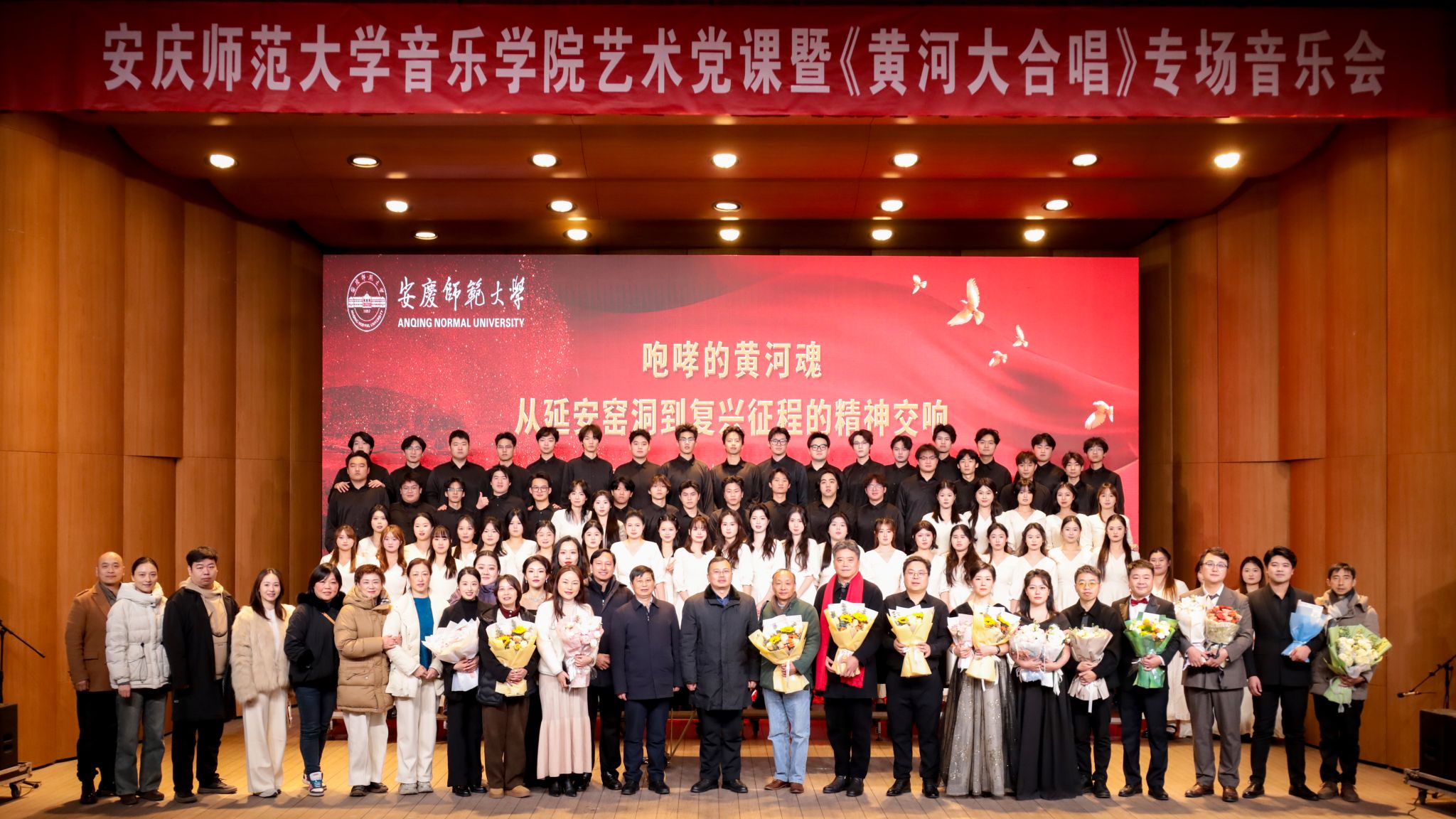 12月26日,音乐厅内气氛庄严热烈,一场以“唱响黄河魂,奋进新征程”为主题的音乐学院艺术周专场演出在此举行。校党委常委、组织部常务副部长计裕人,音乐学院党委书记张铭等嘉宾以及全院师生齐聚一堂,共同观摩。此次活动是音乐学院首次完整演绎《黄河大合唱》八个乐章,并创新性地以一堂生动的“艺术党课”形式,融红色经典于艺术实践,用歌声传承精神,以旋律激荡人心。