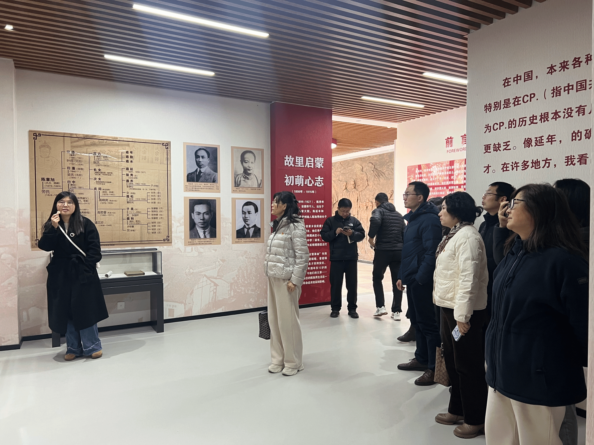 季学芳一行实地考察了“延乔”书屋、皖江文库和特藏阅览室,在“延乔”书屋,来访人员认真聆听陈延年、陈乔年生平事迹介绍,仔细了解图片背后的历史史实,深入了解陈延年、陈乔年烈士的革命事迹,感受“延乔精神”的深刻内涵。季学芳一行对图书馆创建“延乔”书屋、充分发挥红色馆藏在学校“大思政”工作中的独特作用表示赞赏。