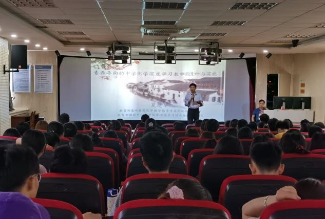 5月14日下午,教育部课程中心高中化学深度学习核心专家夏建华老师应邀来beat365化学化工学院讲学,在龙山校区F楼411报告厅作了题为“素养导向的中学化学深度学习教学设计与实践”的学术报告。报告会由夏宏宇教授主持,化学学科教研室全体教师、学科教学硕士研究生及2018级师范类本科生共120余人参加聆听了此次报告。