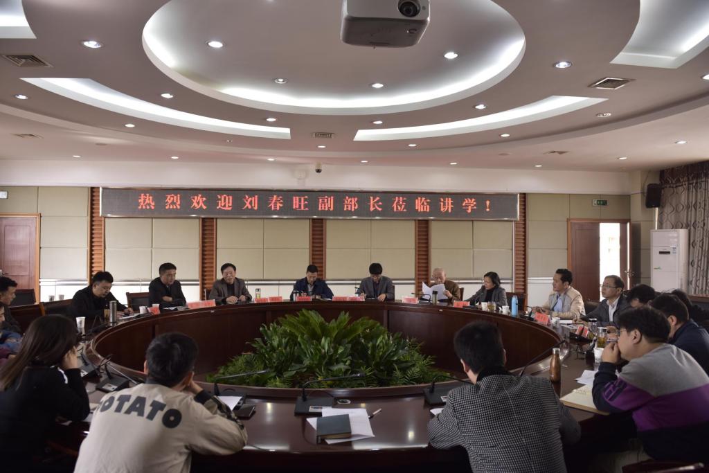 11月10日上午,安庆市委宣传部常务副部长刘春旺在龙山校区为beat3652019级艺术(戏曲)硕士点师生作了题为“黄梅戏传承的几个问题”的学术报告。报告会由黄梅戏艺术发展研究中心主办,科研处、黄梅剧艺术学院联合承办,校党委常委、副校长汪时珍出席报告会。