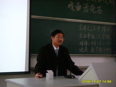 11月7日,文学院王平博士在龙山校区作题为“从剧目看贵池傩戏的戏曲活化石价值”的学术报告。这是我院“教授、博士论坛”系列活动之一。
