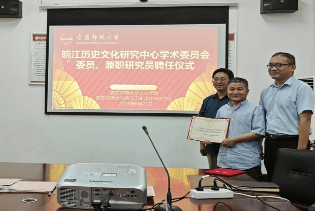 皖江历史文化研究中心聘任张全海博士为该中心学术委员会委员、兼职研究员。仪式由人文学院副院长汪孔丰教授主持,皖江历史文化研究中心主任叶当前教授向张全海博士颁发了聘书。(撰稿:方文静 摄影:彭园霞 编辑:徐辉 审核:金松林 王惠)