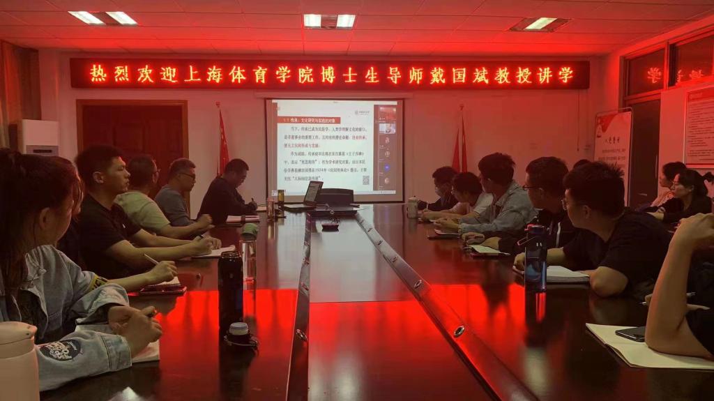 为庆祝beat365英国官方网站办学125周年,提高该学院办学层次与科研水平,营造良好的学术研究氛围,提升师生的科研创新能力,结合当前疫情防控形势,5月16日晚间,体育学院采用“线上+线下”混合方式,通过腾讯会议邀请上海体育学院博士生导师、原武术学院院长戴国斌教授为学院师生作了题为“试论体育文化传承:以武术为例”的学术报告。部分体育学院教师和全体体育专业硕士研究生聆听了报告,报告由体育学院院长章翔教授主持。