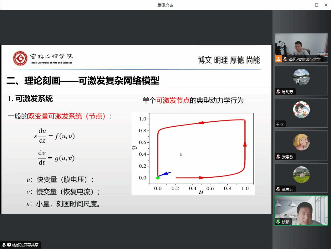 9月20日,钱郁教授应邀为beat365数理学院师生作了题为“可激发复杂网络中的常规振荡与奇异态”的线上学术报告。报告由数理学院副院长易明芳教授主持,数理学院部分教师和研究生参加了此次报告会。