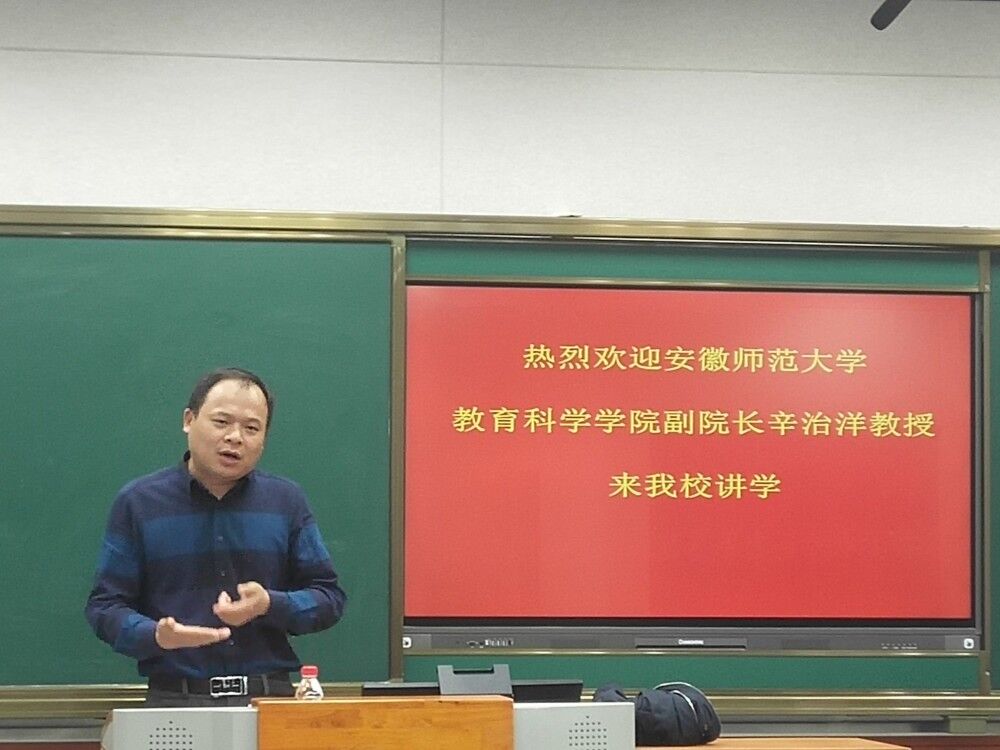 11月7日下午,应教师教育学院邀请,安徽师范大学教育科学学院副院长辛治洋教授在J511教室作题为“例谈教育科研的问题与方法”学术讲座。学院全体研究生及部分教师聆听了讲座,此次报告由教师教育学院副院长汪洋主持。
