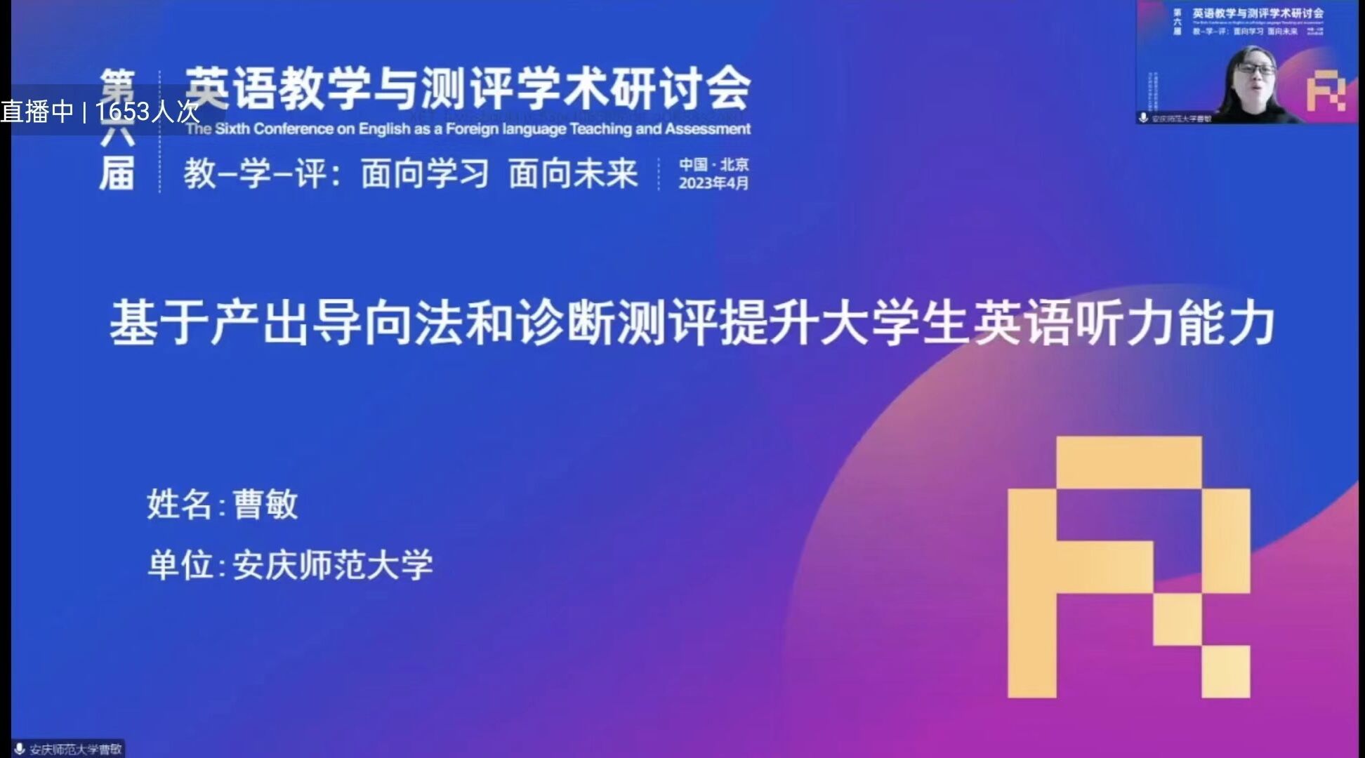 4月7日至8日,由北京师范大学外国语言文学学院、外语教学与研究出版社联合主办的第六届全国英语教学与测评学术研讨会以线上线下相结合的方式成功举办。外国语学院曹敏老师作了“基于产出导向法和诊断测评提升大学生英语听力能力”的“教-学-评”实践案例展示。