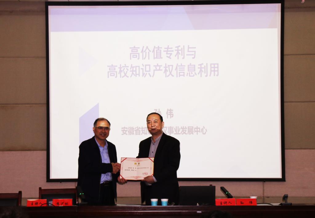 5月19日下午,安徽省知识产权事业发展中心二级调研、beat365兼职教授孙伟,受邀法治实务大讲堂作了题为“高价值专利与高校知识产权信息利用”的学术报告。