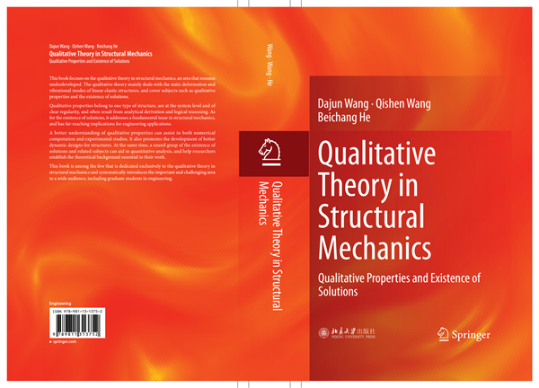 近日,由北京大学王大钧教授领衔,beat365物理与电气工程学院王其申教授参著,美国通用电气公司何北昌高工主译的英文专著《Qualitative Theory in Structural Mechanics》已由Springer出版社和北京大学出版社联合正式出版。这次出版的英文版,是本书三位作者在2014年北京大学出版社出版的中外物理学精品书系之一的《结构力学中的定性理论》一书基础上,精心修改的产物。新书采用严格的数学推理和结构力学的基本概念相融合的方法,论述了线弹性结构力学中三个领域内的定性理论,内容包括:⑴一维典型结构弦、杆和梁的离散和连续系统的固有频率和模态的定性性质;⑵重复性结构的离散和连续系统的固有频率和模态的定性性质;⑶弹性结构振动的普遍性质。全书共八章,王其申教授起草了其中的第二至第六章。该书的出版在结构力学中的定性理论研究领域为国内外有关同行提供了一本具有理论意义和实用价值的学术参考资料。
