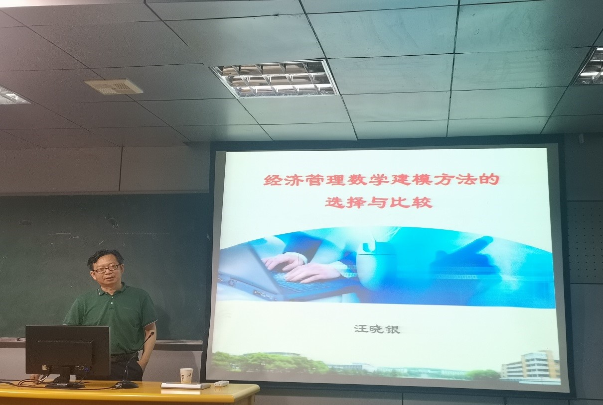 6月18日下午,天津工业大学数学学院汪晓银教授应邀前来beat365经济与管理学院,在C楼406报告厅作题为“经济管理数学建模方法的比较与选择”的学术讲座。会议由经管学院李裕鸿博士主持,该院部分教师,统计学硕士研究生,2018级国贸本科生参会聆听了报告。