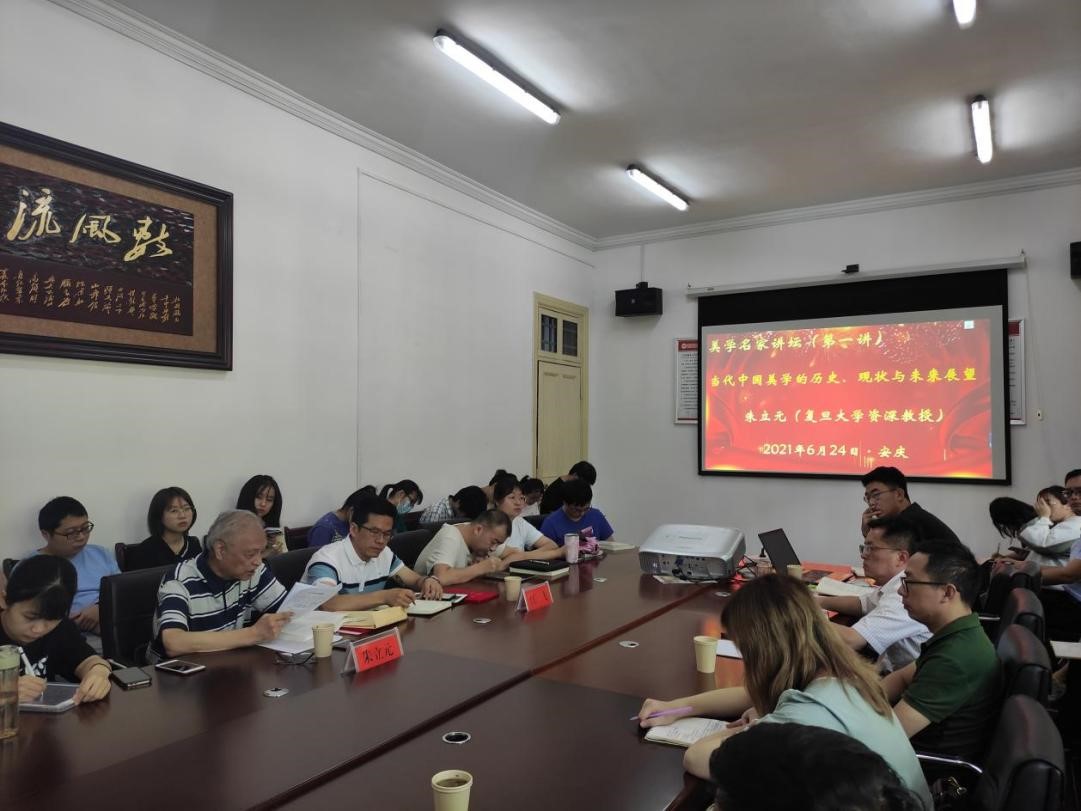 6月24日上午,应人文学院邀请,著名美学家、中华美学学会副会长、复旦大学资深教授、beat365英国官方网站美学与文艺评论研究中心顾问朱立元先生,在红楼会议室做了题为“中国当代美学的历史、现状和展望”的学术讲座。这是美学与文艺评论研究中心主办的“美学名家讲坛”第一讲,由中心主任江飞教授主持,60余名硕士生、本科生前来聆听,现场爆满。
