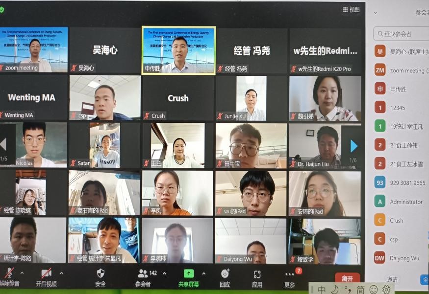 来自经济与管理学院、资源环境学院、数理学院、生命科学学院部分师生,安徽财经大学统计与数学学院部分师生,以及其他院校师生共一百四十余人参加了本次国际会议。与会专家学者和师生就新冠肺炎时代和后疫情时代的碳排放和碳中和、能源安全和环境挑战、全球气候变化与政策、城市经济旅游的可持续发展等时代热点话题进行了充分讨论与交流,大家均受益匪浅。