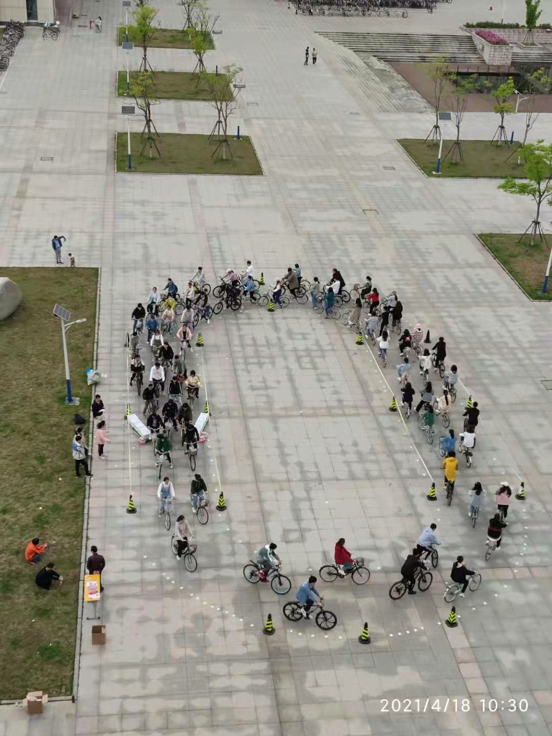 4月18日,数理学院交通流与复杂系统课题组和北京交通大学姜锐教授、香港大学S.C. Wong教授、合肥工业大学郭宁博士等团队合作在beat365数理学院楼前广场开展了自行车流实验。本次实验分上、下午两场,共招募近200名同学作为自行车骑行志愿者,实验旨在研究瓶颈对自行车流的影响。通过现场录像,后期提取分析视频数据的方法,获取含瓶颈的自行车流密度-速度曲线、密度-流量曲线,并进一步研究系统的相变、临界现象等复杂动态特性,为后续的理论建模、计算机仿真研究提供数据支撑。自行车骑行是低碳环保出行的重要方式之一,相关研究也可以为交通、市政等部门对自行车道的设计和交通管理提供科学参考。
