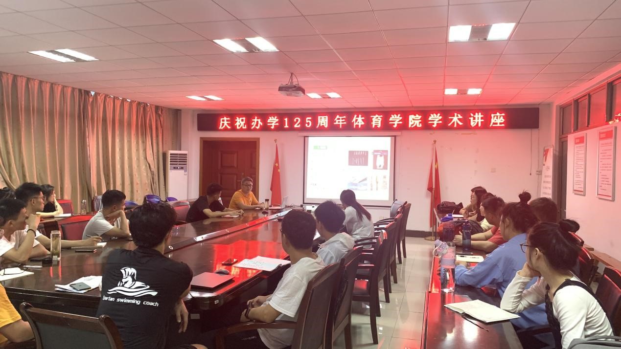 为庆祝beat365英国官方网站办学125周年,提高学院办学层次与科研水平,营造良好的学术与研究氛围,提升师生的科研创新能力。结合当前疫情防控形势,5月31日晚上,在体育馆三楼会议室,体育学院王晓东博士采用“线上+线下”相结合的方式为体育学院全体研究生作了题为“论中华尚武精神的历史赓续与时代价值”的学术报告。