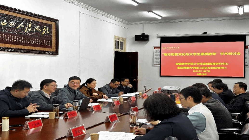 11月7日,beat365英国官方网站皖江历史文化研究中心与安徽新华学院大学生素质教育研究中心在菱湖校区红楼会议室联合举办“地方历史文化与大学生素质教育”学术研讨会。安徽大学、安徽建筑大学、阜阳师范大学、安徽新华学院等高校专家出席会议。