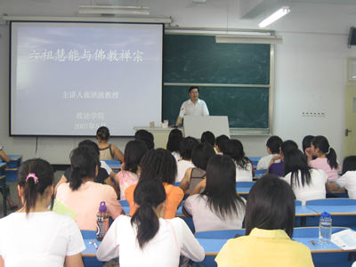 张教授介绍了六祖慧能,并对南禅的基本教义进行了剖析,同时对禅宗进行了一分为二的评价。