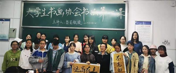 11月2日晚龙山校区教学楼D楼305室,图书馆研究馆员大学生书画协会辅导教师黎莉给本年度书法课堂第一课开讲,来自各院系不同专业的270多位书法协会新生会员,本着要写一手好字的初心聆听了黎老师的报告。