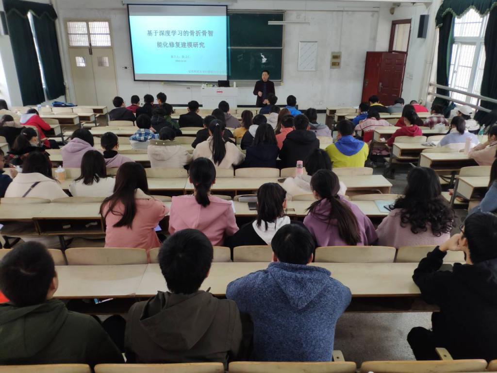 12月15日和16日,计算机与信息学院陈义仁老师在稼先楼南一阶教室为beat365数字媒体技术专业2018级和2017级近200名学生做了题为“基于深度学习的骨折骨修复建模研究”的专业前沿课题讲座。
