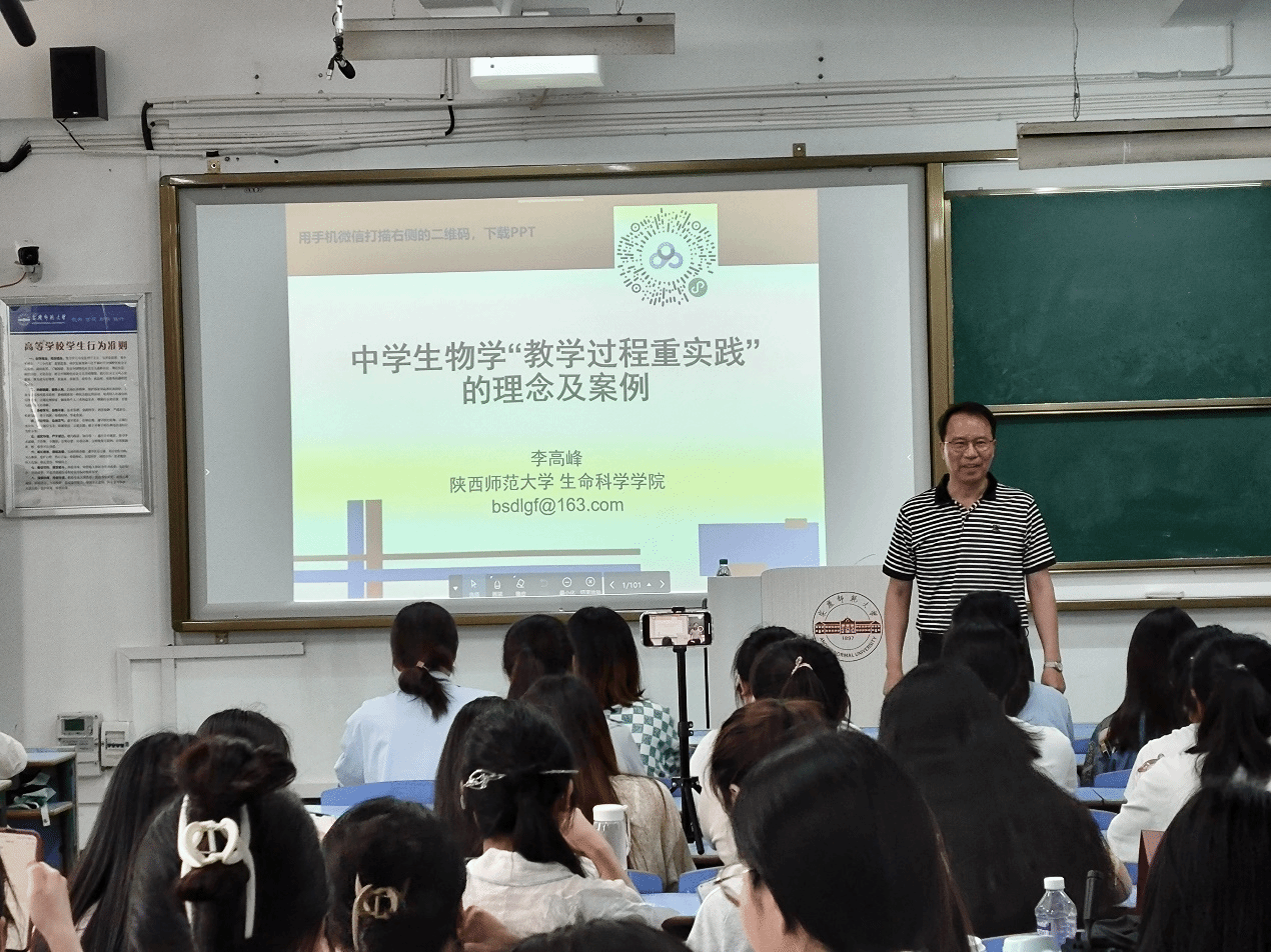 报告会上,李高峰教授从中学生物学课程标准的变革入手,深入阐述了从“生物”到“生物学”这一转变的重大意义。他指出,这一变化不仅体现了学科内容的深化和拓展,更突显了实践在教学过程中的核心地位。