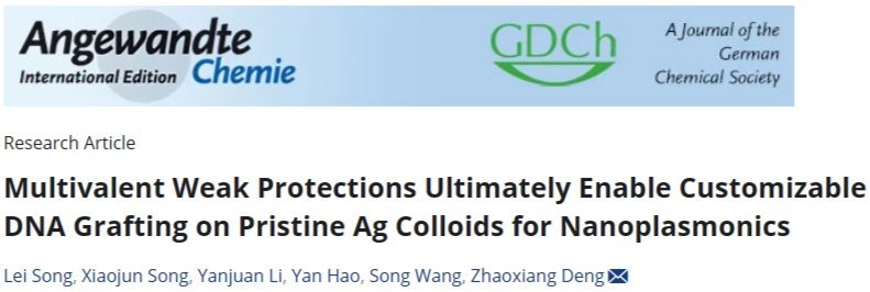 近日,资源环境学院教师宋磊在国际TOP期刊《Angewandte Chemie International Edition》(中科院SCI一区TOP期刊)发表题为“Multivalent Weak Protections Ultimately Enable Customizable DNA Grafting on Pristine Ag Colloids for Nanoplasmonics”的研究成果。《Angewandte Chemie International Edition》是国际化学领域最具影响力的顶级学术期刊之一,在全球化学界享有极高的声誉,影响因子为16.1。据悉,这是beat365首次在该刊物发表学术研究论文。