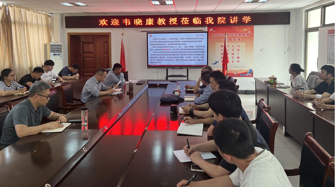 5月7日,体育学院特邀中央民族大学韦晓康教授,举办了主题为《全国少数民族传统体育运动会与铸牢中华民族共同体意识》的学术讲座。体育学院副院长孙明运教授主持,副院长王晓东、教师代表及研究生代表到场聆听。