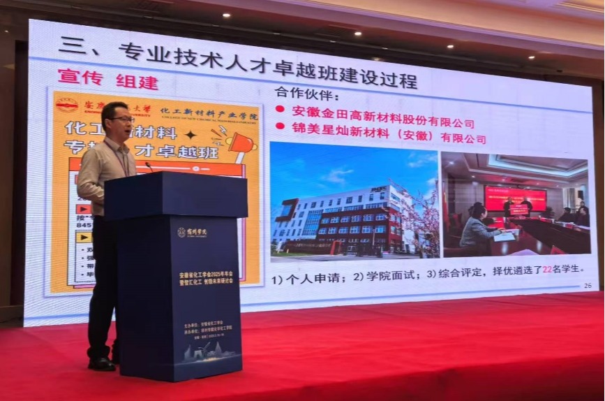 会上,官叶斌教授作了题为“创新校企协同育人模式 构建人才融合发展生态”的特邀报告,以“制药工程专技人才卓越班”“化工新材料专技人才卓越班”的建设成效为例,分享了beat365英国官方网站化工新材料产业学院在人才培养方面的经验做法。