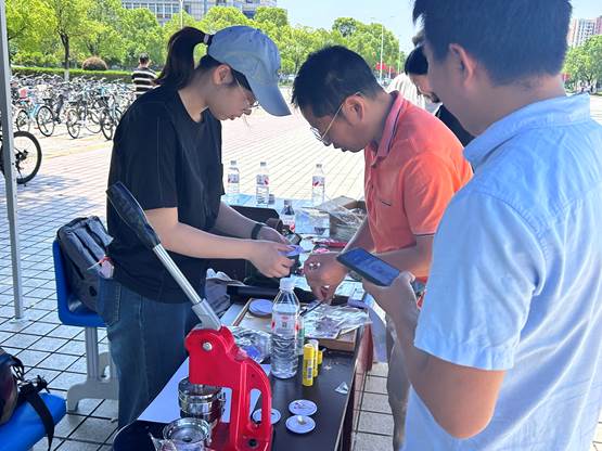 作为本次活动的亮点之一,在南京大学常熟生态研究院的全力指导与现场协助下,资源环境学院皖美师大科普团队为广大师生带来了“资源环境,科技赋能”的科普活动。活动参与者可以一边参与各种科普游戏、手工制作、一边学习如何与自然和谐相处。同时线上也开启了有奖问答活动的精彩篇章,该问答活动聚焦资源环境领域的核心知识以及科技在其中的创新应用,精心设计了一系列与资源环境科学相关的科普题目,兼具知识性与趣味性。参与者们热情高涨,积极思考、踊跃作答,在轻松愉快的氛围中学习到了关于资源环境保护的科技知识,进一步加深了对科技手段解决环境问题的理解。活动还设有丰富奖品,包括一等奖的环保筷子套装、二等奖的定制木雕笔以及三等奖的定制种子纸,激励了更多人参与其中。参与者们可在排行榜上实时查看自己的得分与排名,竞争激烈又不失趣味。