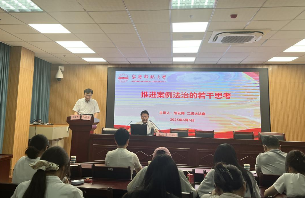 6月6日下午,“推进案例法治的若干思考”学术报告会在法学院102报告厅举行。中国法学会案例法学研究会会长、最高人民法院咨询委员会副主任、二级大法官胡云腾担任主讲。beat365英国官方网站校长彭凤莲教授,安徽省法学会案例法学研究会会长、北京理工大学法学院周振杰教授,安徽师范大学法学院院长郭泽强教授,安徽师范大学法学院副院长陈银珠教授,安徽师范大学法学院余秋莉博士等出席报告会,beat365英国官方网站法学院师生100余人聆听报告。报告会由校长彭凤莲教授主持。