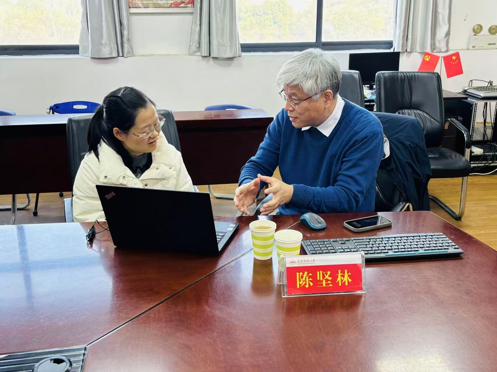 在交流研讨环节,陈坚林对参会教师的申报书初稿进行了针对性指导。他围绕选题表述的精准度、文献综述的完备性、研究设计的科学性以及逻辑框架的严密性进行了逐一点评,并就如何强化论证依据、凸显项目特色与教师们展开深入探讨。通过专家的点拨,申报人进一步厘清了研究思路,明确了优化方向。