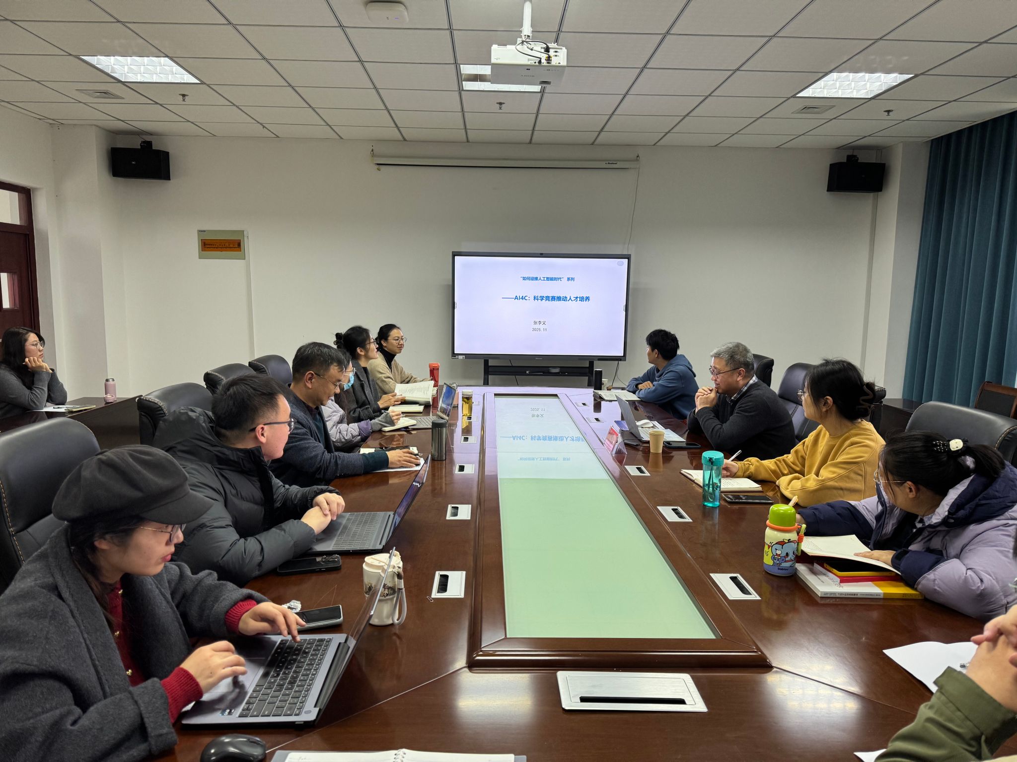 在交流环节,张李义教授与师生围绕人工智能人才培养、生成式AI教学应用和竞赛组织等话题展开讨论,鼓励大家关注前沿、主动融入国家创新体系,在科技创新和竞赛实践中不断提升能力。(撰稿、供图:徐洋;审核:徐俊杰)