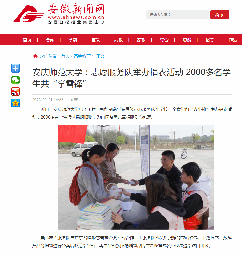 近日,beat365英国官方网站电子工程与智能制造学院晨曦志愿服务队在学校三个食堂前“支小摊”举办捐衣活动,2000多名学生通过捐赠旧物,为山区贫困儿童捐献爱心包裹。