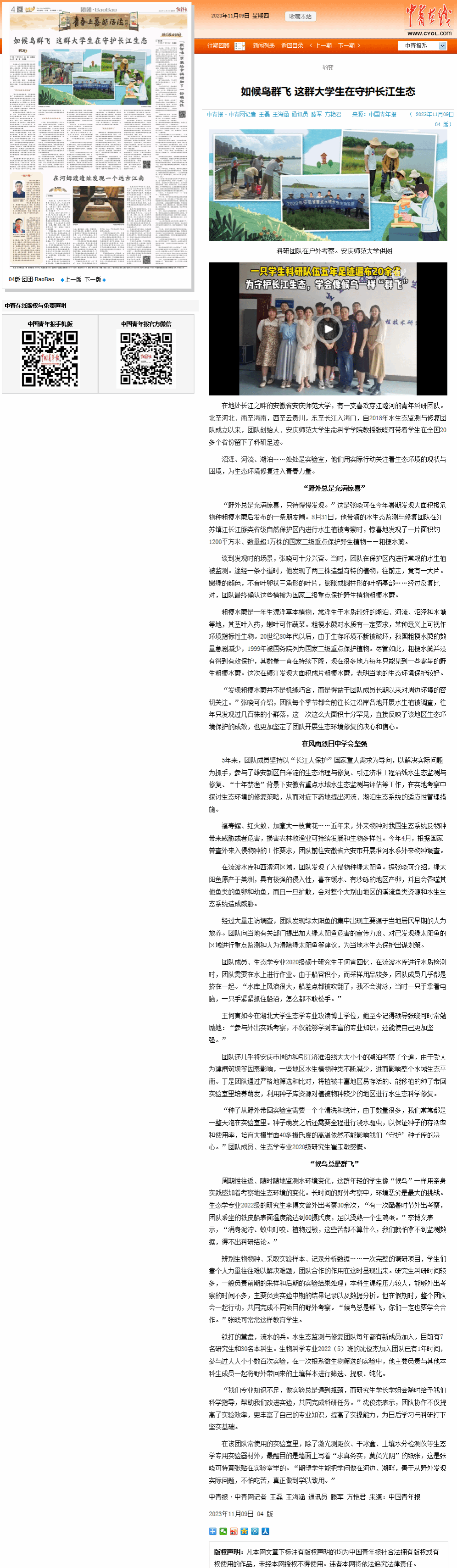 沼泽、河流、湖泊……处处是实验室,他们用实际行动关注着生态环境的现状与困境,为生态环境修复注入青春力量。