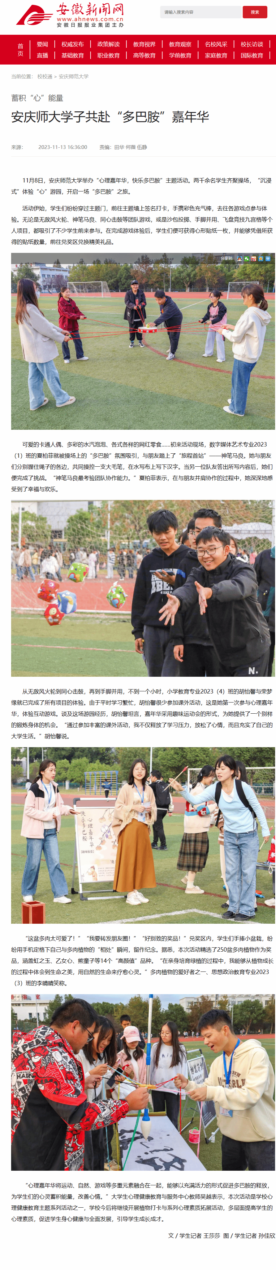 上一篇:中国网:蓄积“心”能量 安庆师大学子共赴“多巴胺”嘉年华