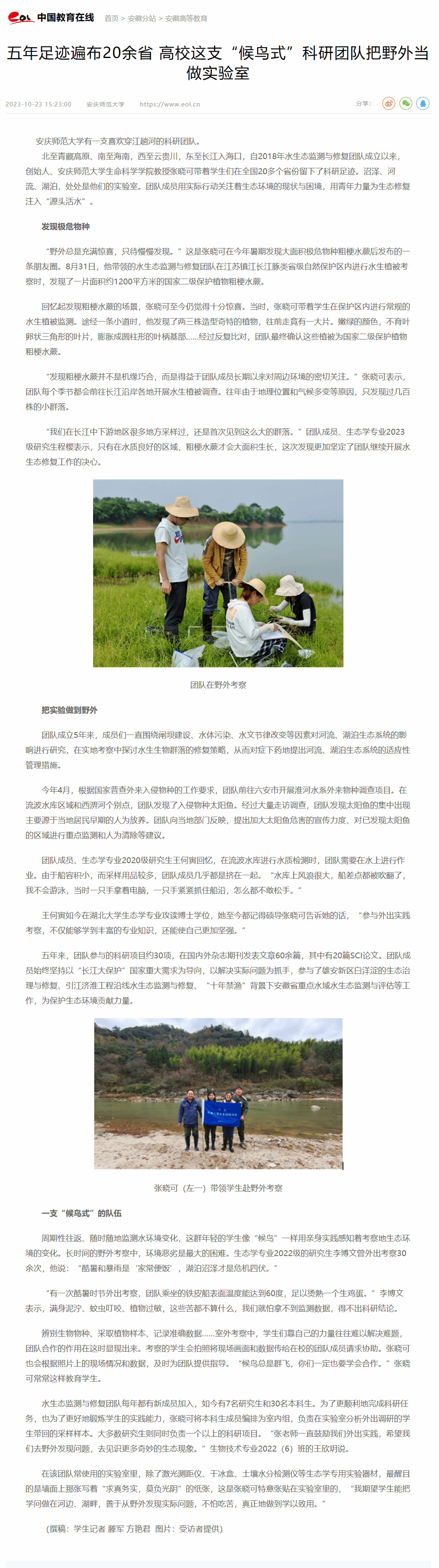 上一篇:安徽日报客户端:五年足迹遍布20余省,安徽一高校“候鸟式”科研团队把野外当做实验室