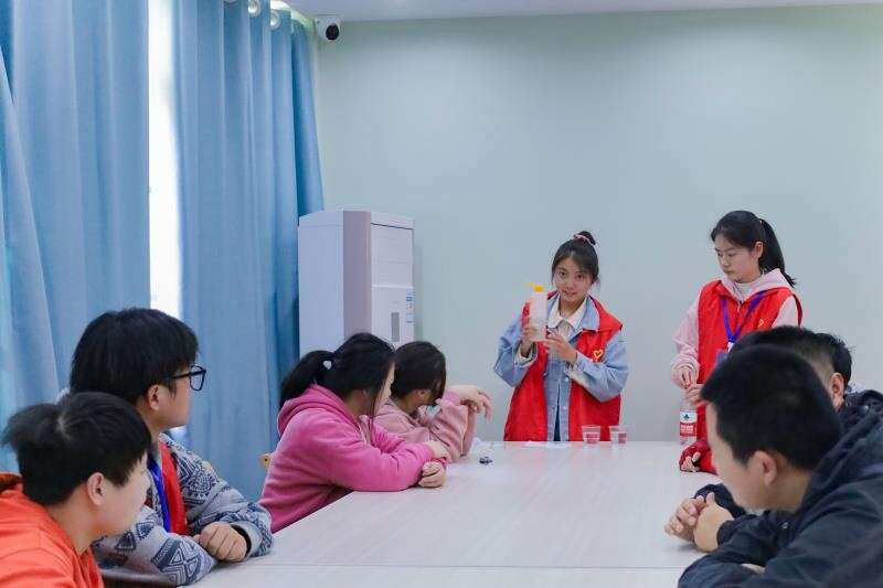 安庆师大汇爱志愿服务队在带特殊儿童做科学实验。