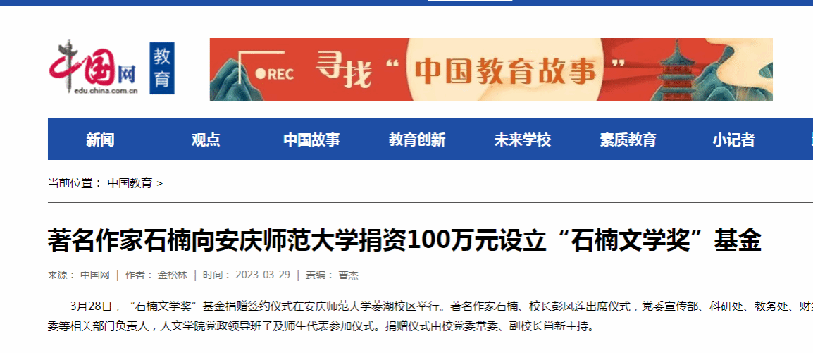 3月28日,“石楠文学奖”基金捐赠签约仪式在beat365英国官方网站菱湖校区举行。著名作家石楠、校长彭凤莲出席仪式,党委宣传部、科研处、教务处、财务处、校友总会办公室、学生处、团委等相关部门负责人,人文学院党政领导班子及师生代表参加仪式。捐赠仪式由校党委常委、副校长肖新主持。